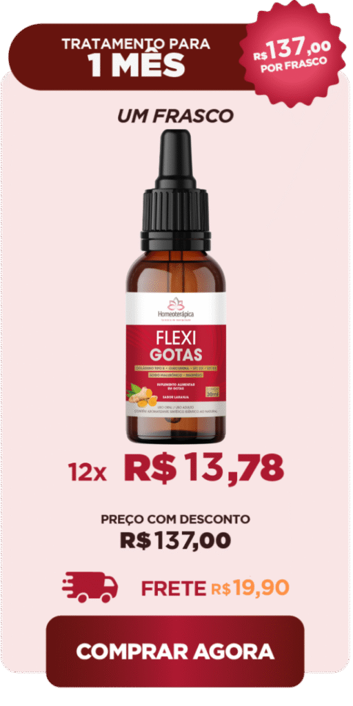 Elaborado sob os preceitos da Homeoterápica Farmácia de Manipulação, FlexiGotas tem ação sinérgica, a qual implica em cada um dos seus componentes potencializar a ação dos outros, agindo diretamente na causa das dores articulares, estimulando a regeneração do tecido cartilaginoso, lubrificando e protegendo as articulações, reduzindo a inflamação e a dor.